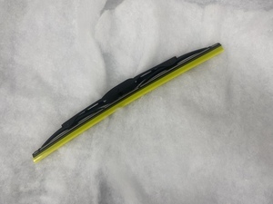 A wiper blade is a thin, rubber or silicone strip attached to a metal arm on a vehicle, used to wipe away rain, snow, or debris from the windshield for visibility while driving.